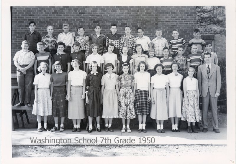 This photo is of Mr. Reisen's 7th grade class at Washington School. We are working on putting names to the faces & have been successful with most of them. Since it is difficult to make out some of the students, you can receive by email a full-size copy of the picture to study and identify people. |